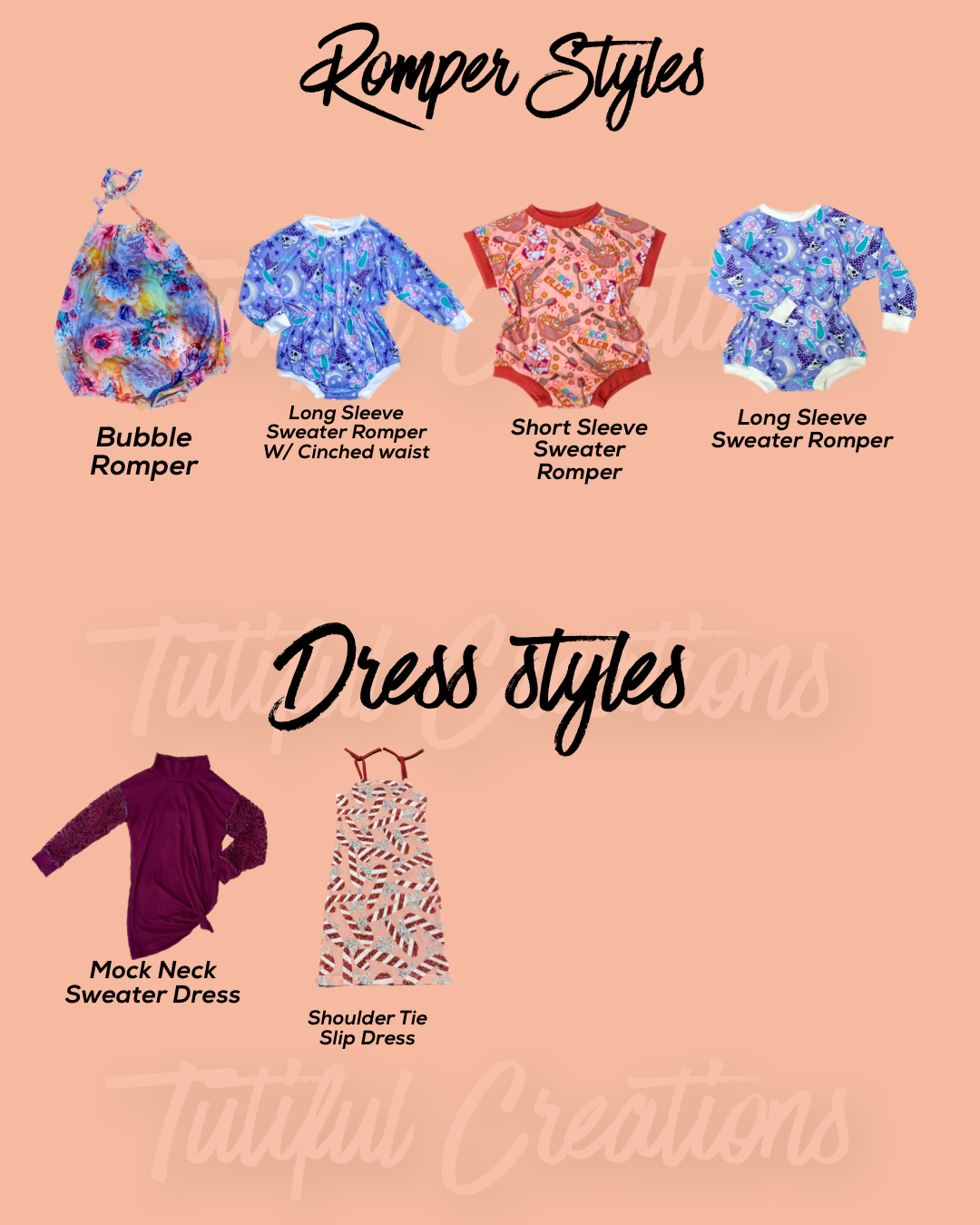 🌺Bubble rompers - (DOES NOT come with snaps) newborn up to size 5/6years I don’t recommend to size up as these give plenty of room for growth.