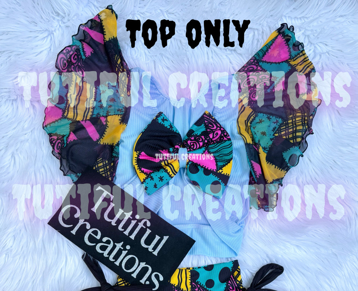 PATCHWORK S Rib Knit Bow back (Choose Finish/Sleeve style) Top Only size up (read description) MUST SELECT Sleeve. Style shown is FLUTTER sleeves ‼️
